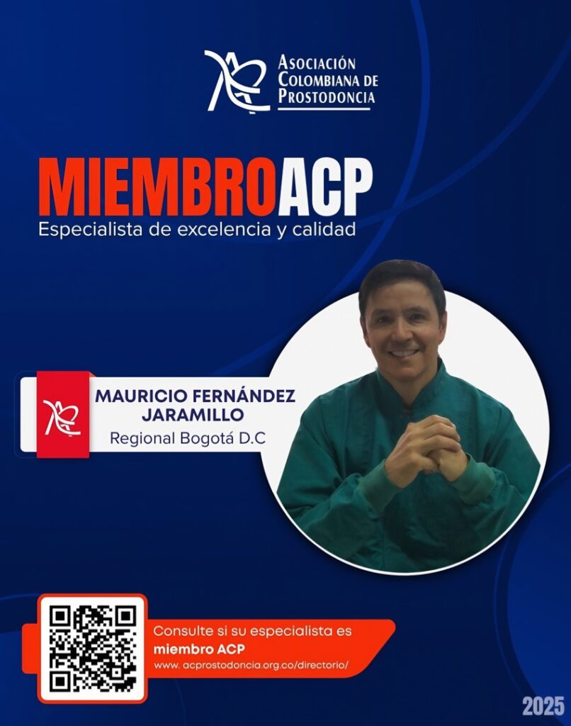 El Dr. Mauricio Fernández Jaramillo es miembro activo de la Asociación Colombiana de Prostodoncia (ACP), una de las entidades más prestigiosas en el ámbito de la odontología especializada en Colombia.